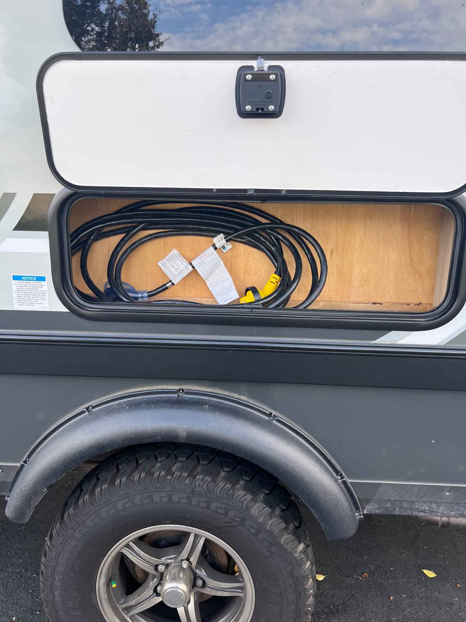 Under body storage for sewage hose
