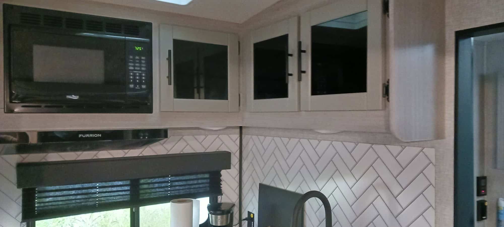 Spacious living space with indoor/outdoor kitchens. King size bed. Very comfortable recliner couch. TV. Full bathroom with on demand water heater. Solar power and wifi capabilities. Lots of storage.