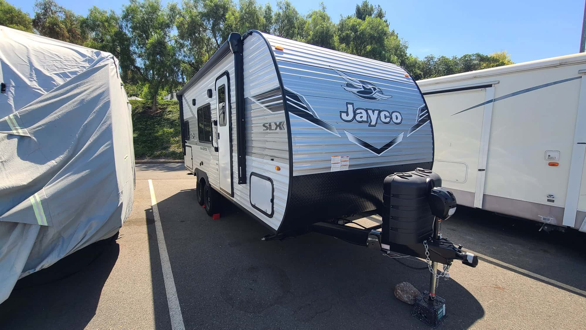 Generally this level Jayco RV comes with the tiny wall ac unit. Not this one. Includes the optional 15 BTU roof a/c, which is fully ducted throughout the unit.