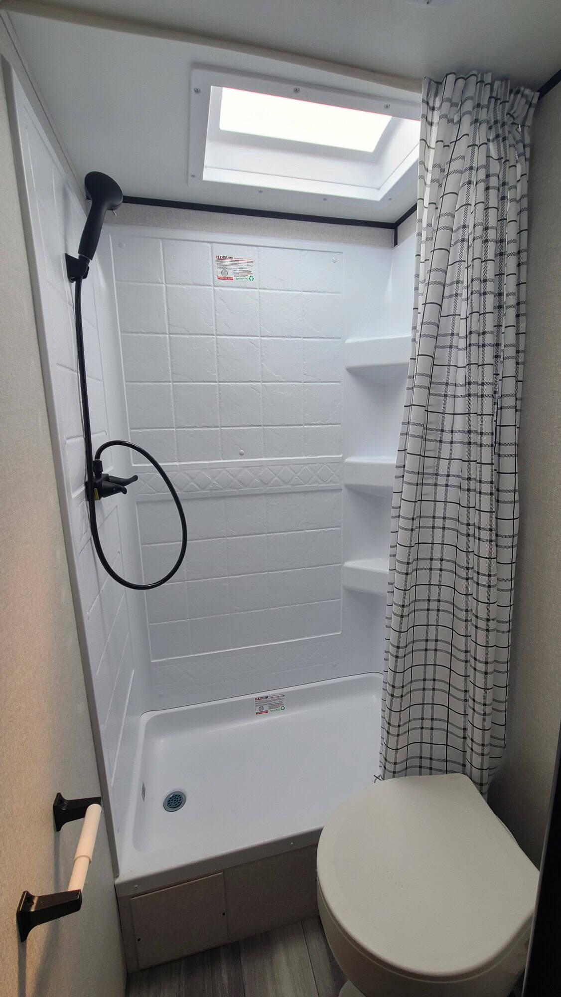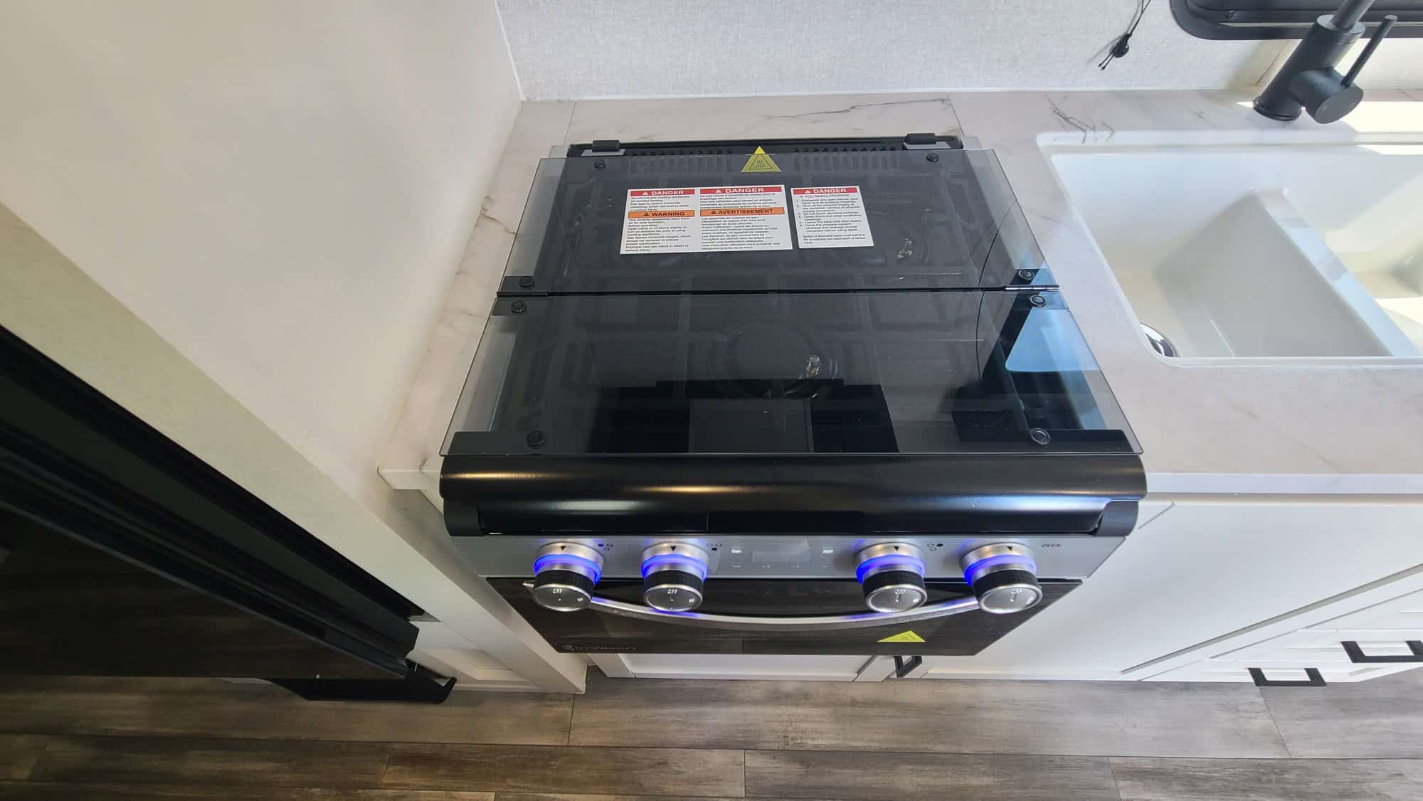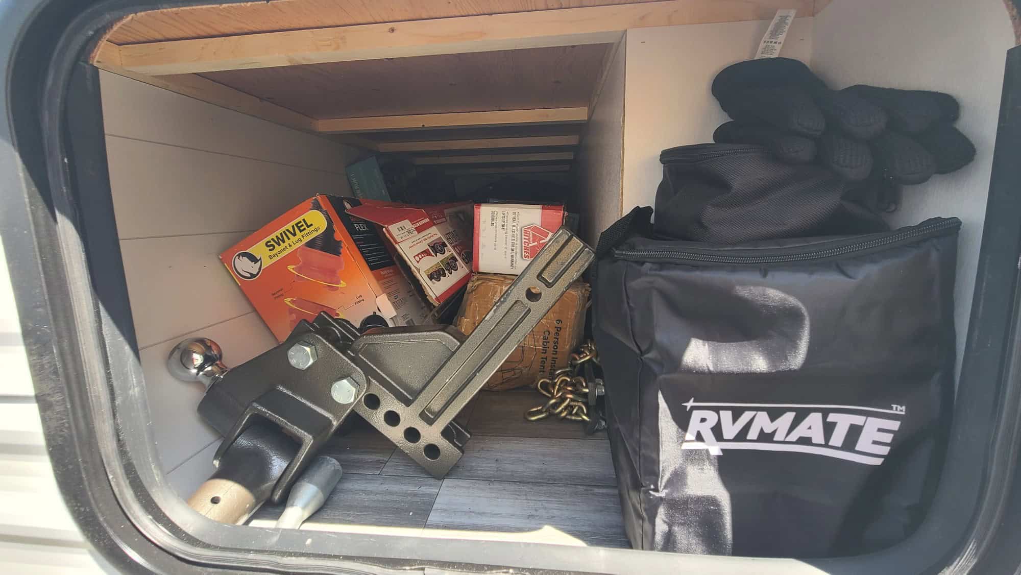 The pull down Murphy Bed is a breeze to open, and the two rear bunks are double sized- not tiny coffin-like cramped cubbies. This unit is loaded with all new extras, power cords, leveling blocks, 4 stabilizers front and rear for leveling. and, it’s never been slept in, toilet never used, and not a drop of water down the sink. Thanks to Prop 65, you will not find another unit like this anywhere in California! This is the perfect off road or Baja adventures vehicle!
