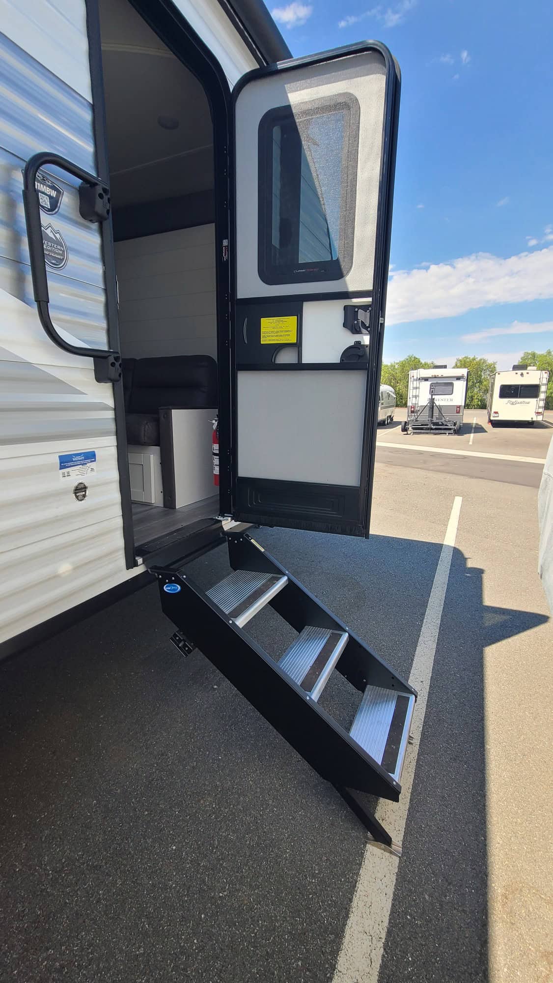 This hard to find, Baja Edition, has a completely sealed undercarriage, dual 30 gal propane tanks, power hitch lift, tankless unlimited hot water, Microwave oven, cooktop with integrated traditional oven, onboard 3 stage water filtration system, power awning with led lighting, complete bluetooth stereo system, with switchable outdoor speakers, and so much more.