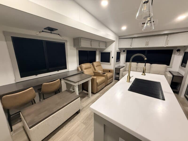 Whether you’re a full-time RVer or a weekend warrior, this fifth wheel is sure to impress. The Brinkley MODEL Z 3100 utilizes state-of-the-art technology to enhance the overall camping experience. From the kitchen to the bedroom, every inch of this trailer has been carefully crafted to provide maximum comfort and convenience.